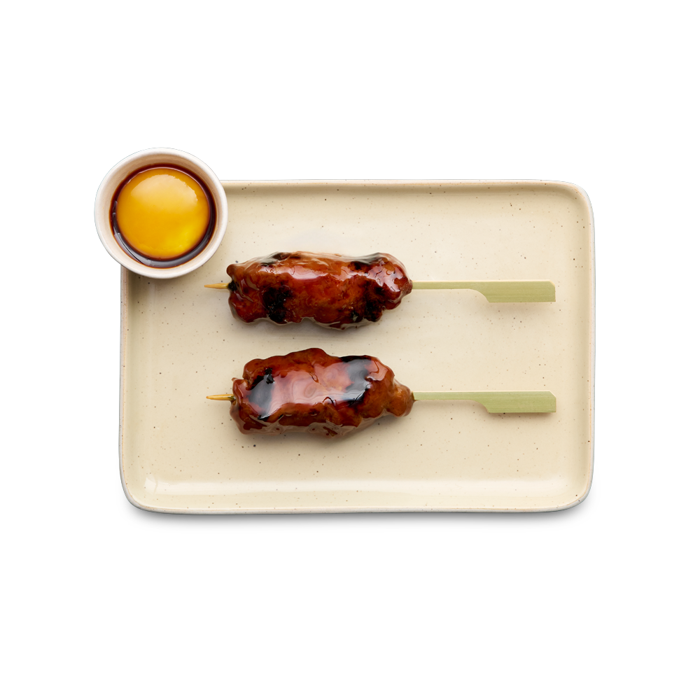 Grilled duck meatball with egg yolk in supreme soy